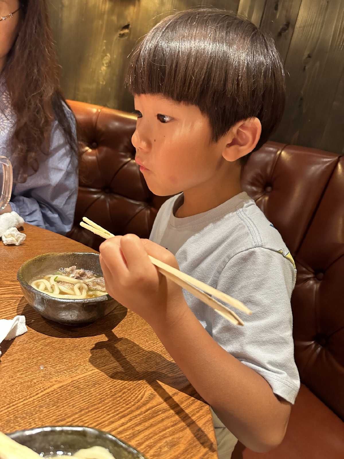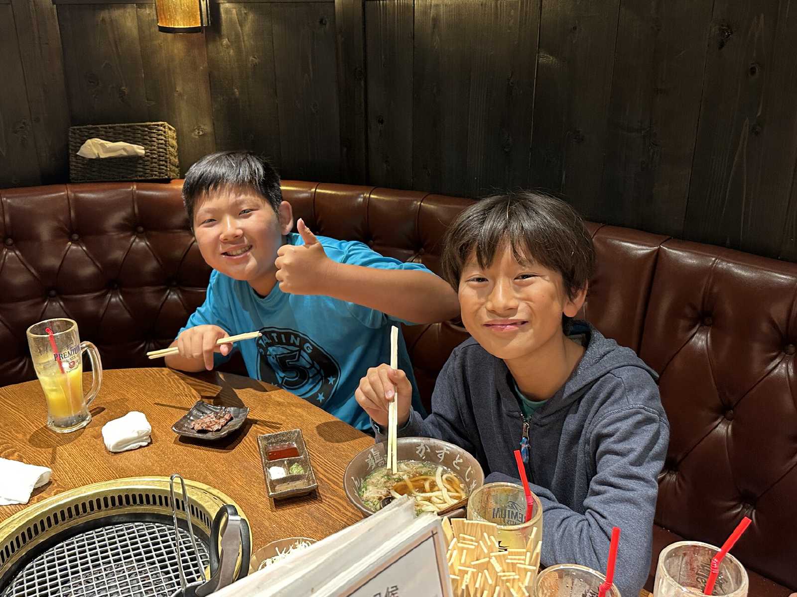 After we settled, we walked out of the hotel and looked for some dinner. We ended up at a restaurant that was primarily a barbecue place, but it had great udon. Kids said it was the best tasting udon they ever had.